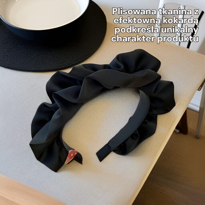 ● Plisowana tkanina z efektowną kokardą podkreśla unikalny charakter produktu, przyciągając uwagę i zapewniając modny wygląd.
